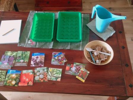 Zwei Kinder aus der Nachbarschaft haben schon fleißig angesät. Der Renner waren Mexikanische Minigurken, knallrote Zucchini-Samen und die Samentüte mit den bunten Schlingpflanzen drauf. Ich versuche mich außerdem mit der Vorzucht von Tomaten, Auberginen, Paprika und Gurken. Neu dabei ist dieses Jahr eine Melonenbirne. Die meisten Keimlinge schauen mittlerweile schon heraus und können bald umgetopft werden. Einer hatte sogar schon einen Auftritt als Zimmerpflanze in diesem Titelbild.